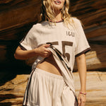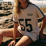 The Club 55 Shorts are cut from organic cotton pointelle for a soft, breathable finish that feels weightless against the skin. Featuring a relaxed elastic waist, cocoa side stripe detailing, and curved hem — made for sunlit days and slow afternoons.