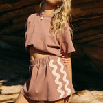 Pair it with the Dune Run Skirt — designed with signature wave detailing — for an earthy, elevated look that moves as freely as the tide.