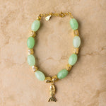 Stack with meaning in our GOIA Bracelet. Adorned with natural green jade stones, a dainty sardine charm, and 18kt crushed gold filled beads, this piece brings a playful, sun-soaked spirit to your everyday style.