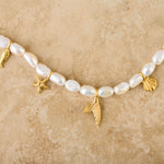 Ethereal and enchanting, the LORELEI Necklace is a tribute to ocean mythology and feminine mystique. Hand-strung with luminous freshwater pearls and adorned with mermaid-inspired seashell and fish charms, this piece captures the magic of the sea with a touch of storytelling elegance.
