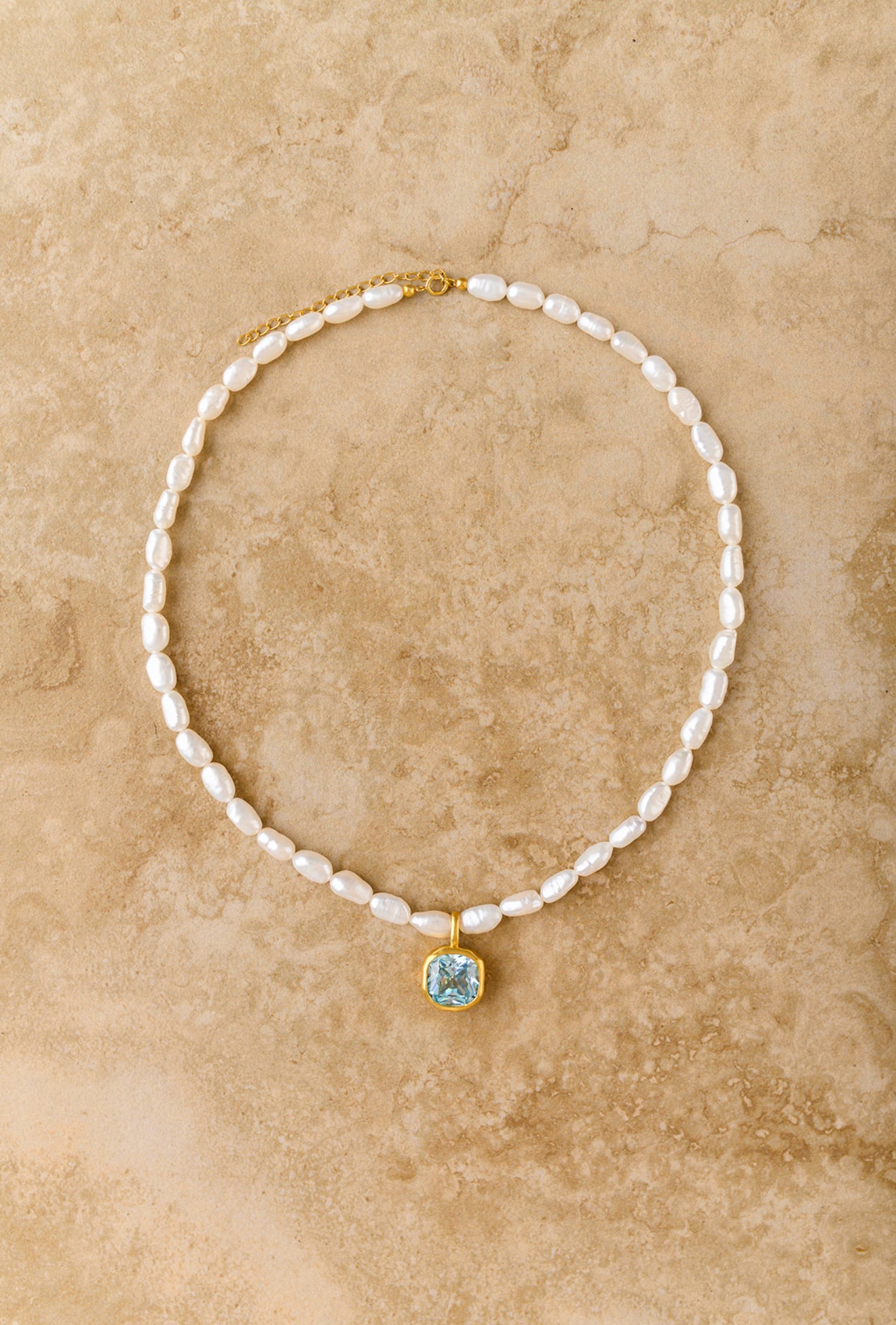 • Blue Topaz Stone + Freshwater Pearls