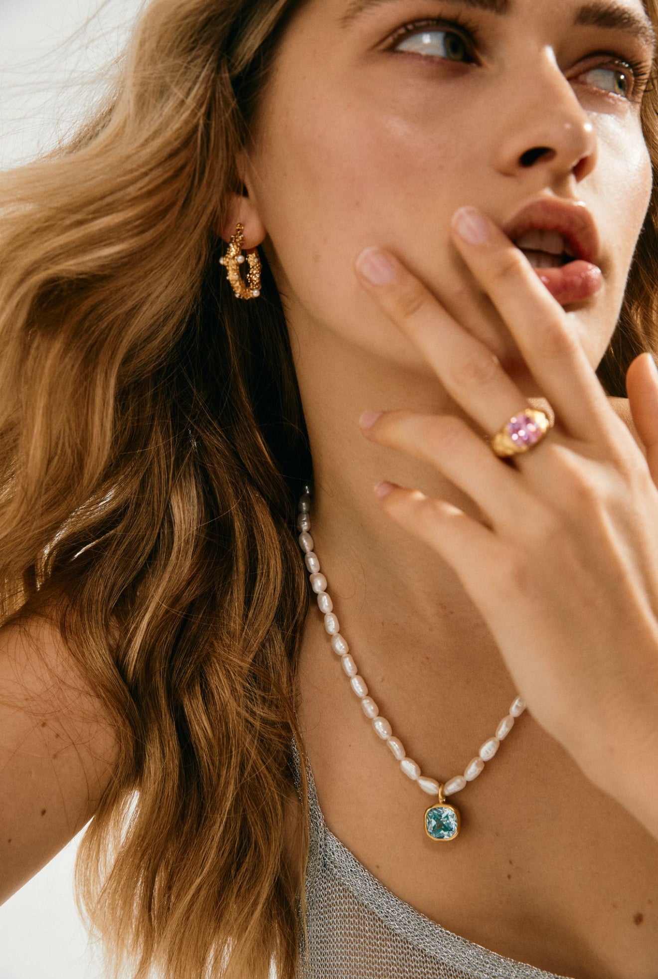 Inspired by shimmering ocean depths, MARINE pairs a radiant blue topaz with lustrous pearls. A true coastal statement with a luxe finish.