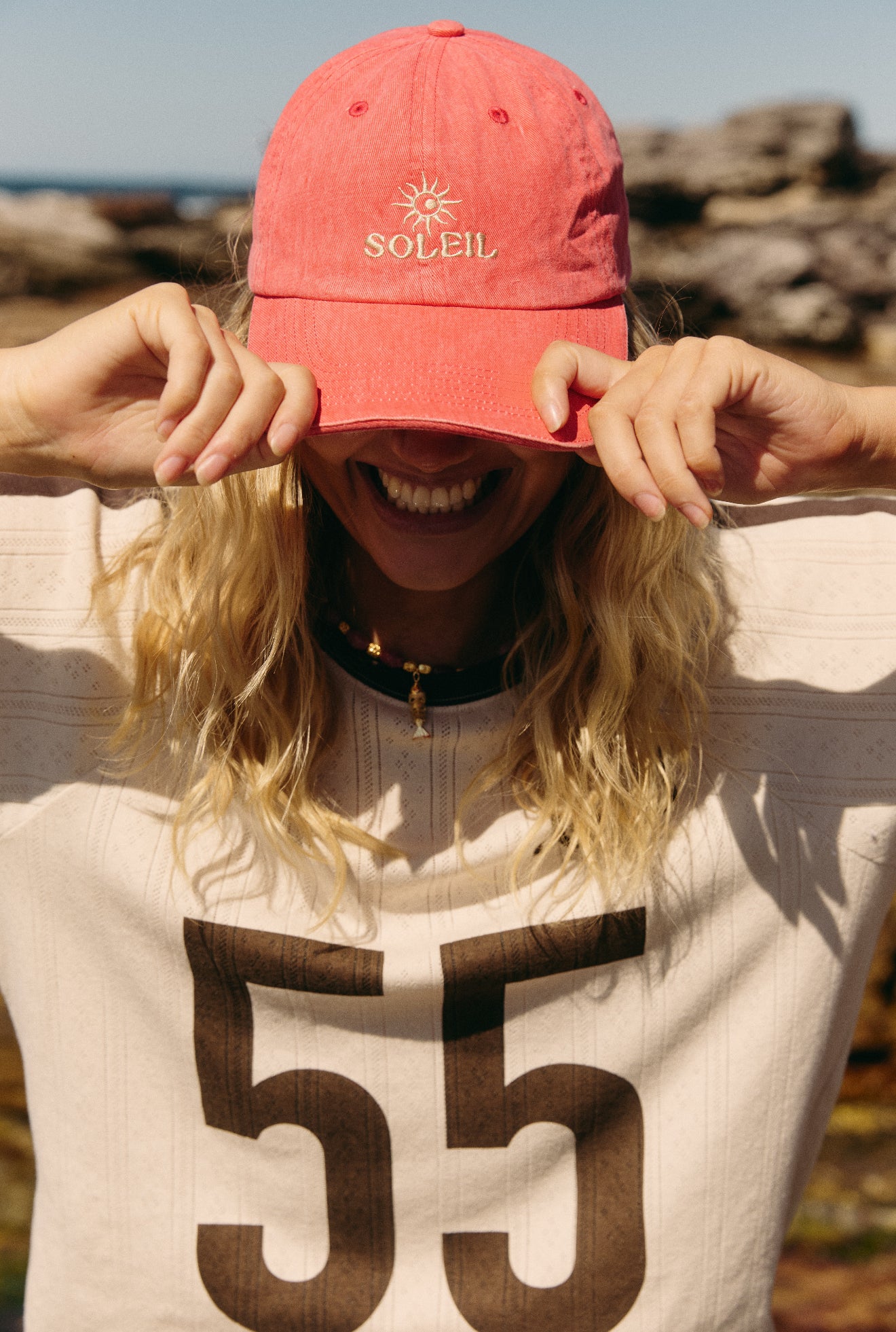 The Soleil Cap is crafted from premium cotton with a lived-in, acid-wash finish — the perfect shade of faded red that feels like it’s been worn and loved for seasons. Lightweight and unstructured, it’s designed for comfort, movement, and everyday wear.