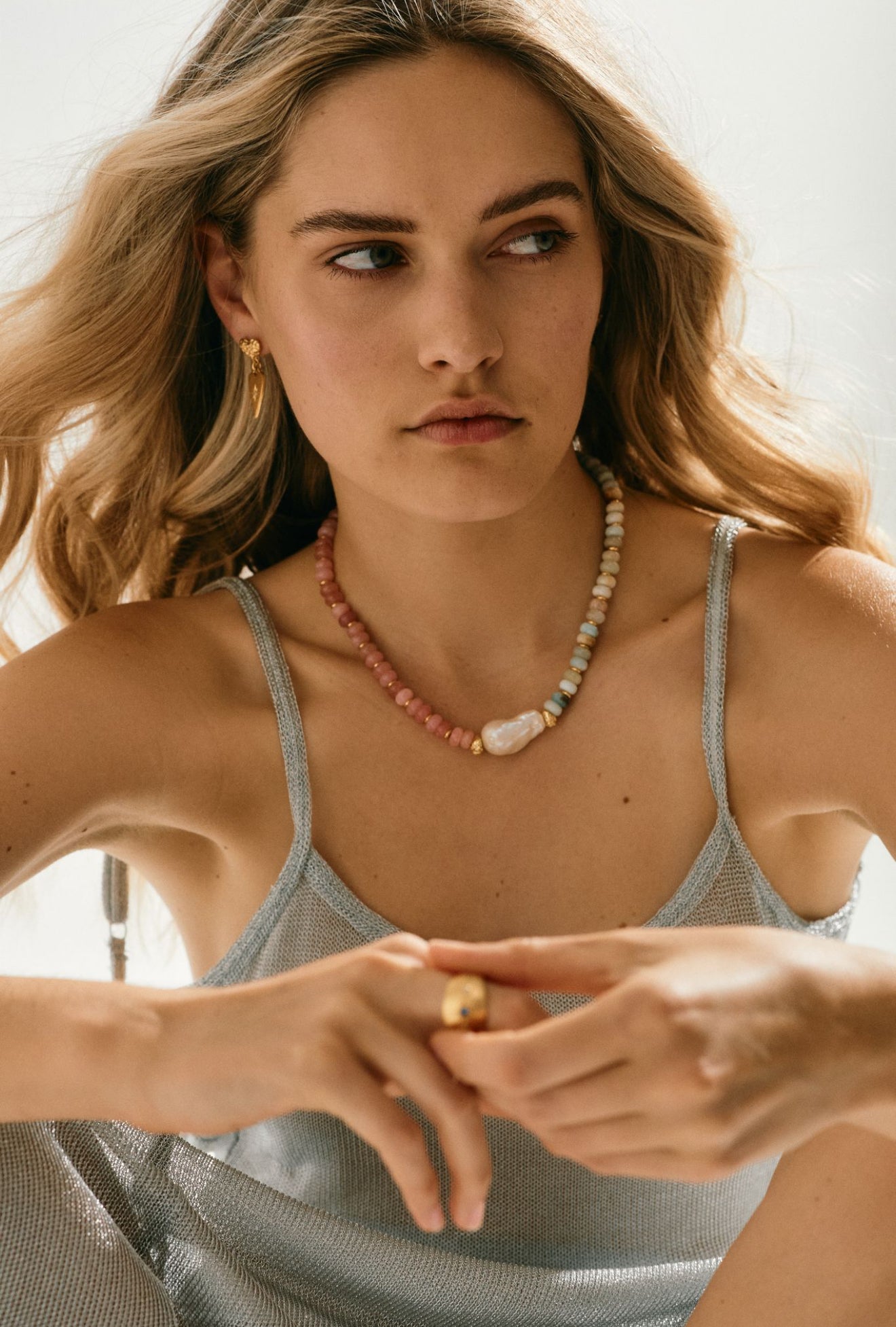 TROPICA brings the dreamy warmth of summer days to your everyday look. Soft pink opal meets cool amazonite in a palette inspired by sunkissed skin and tropical escapes.