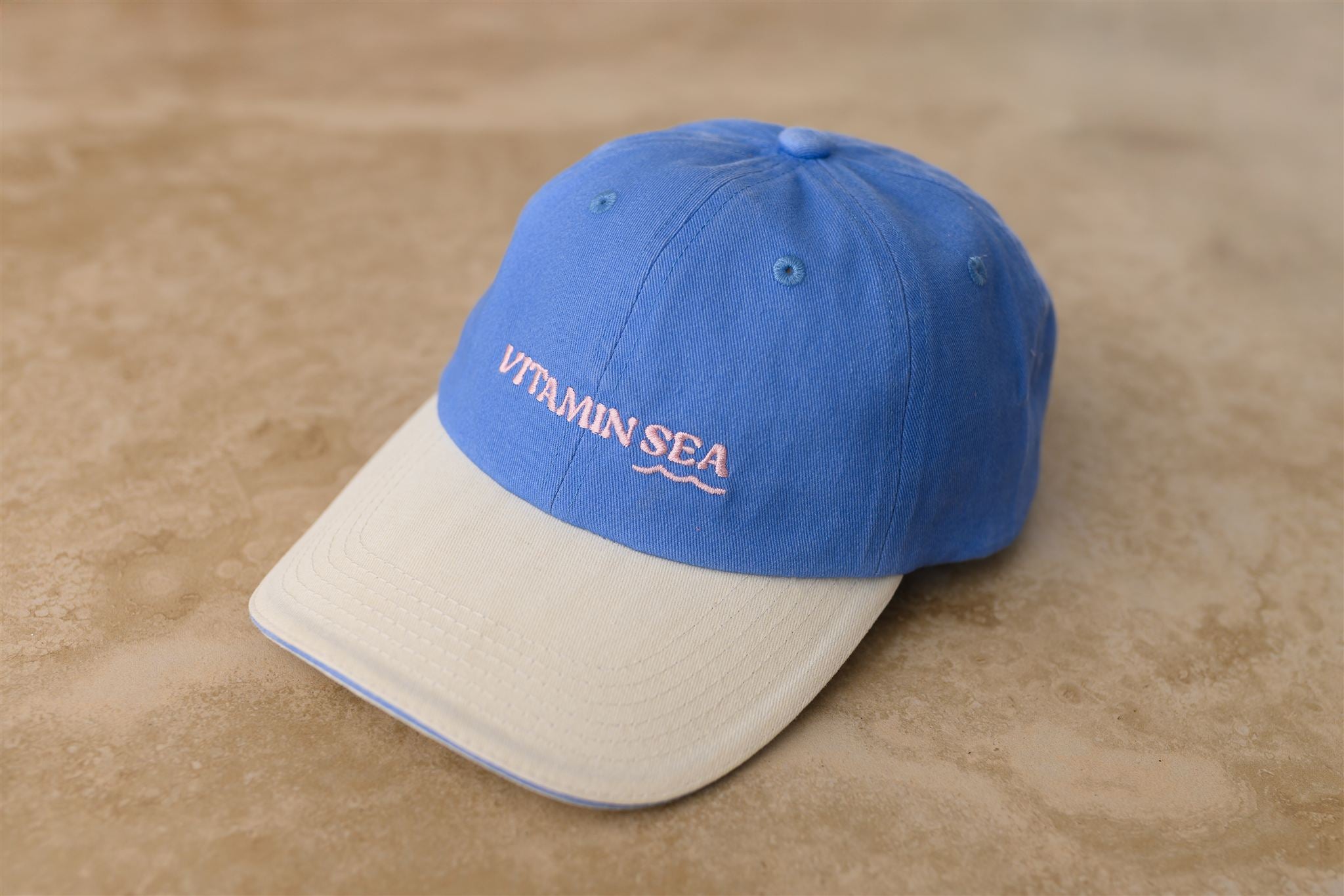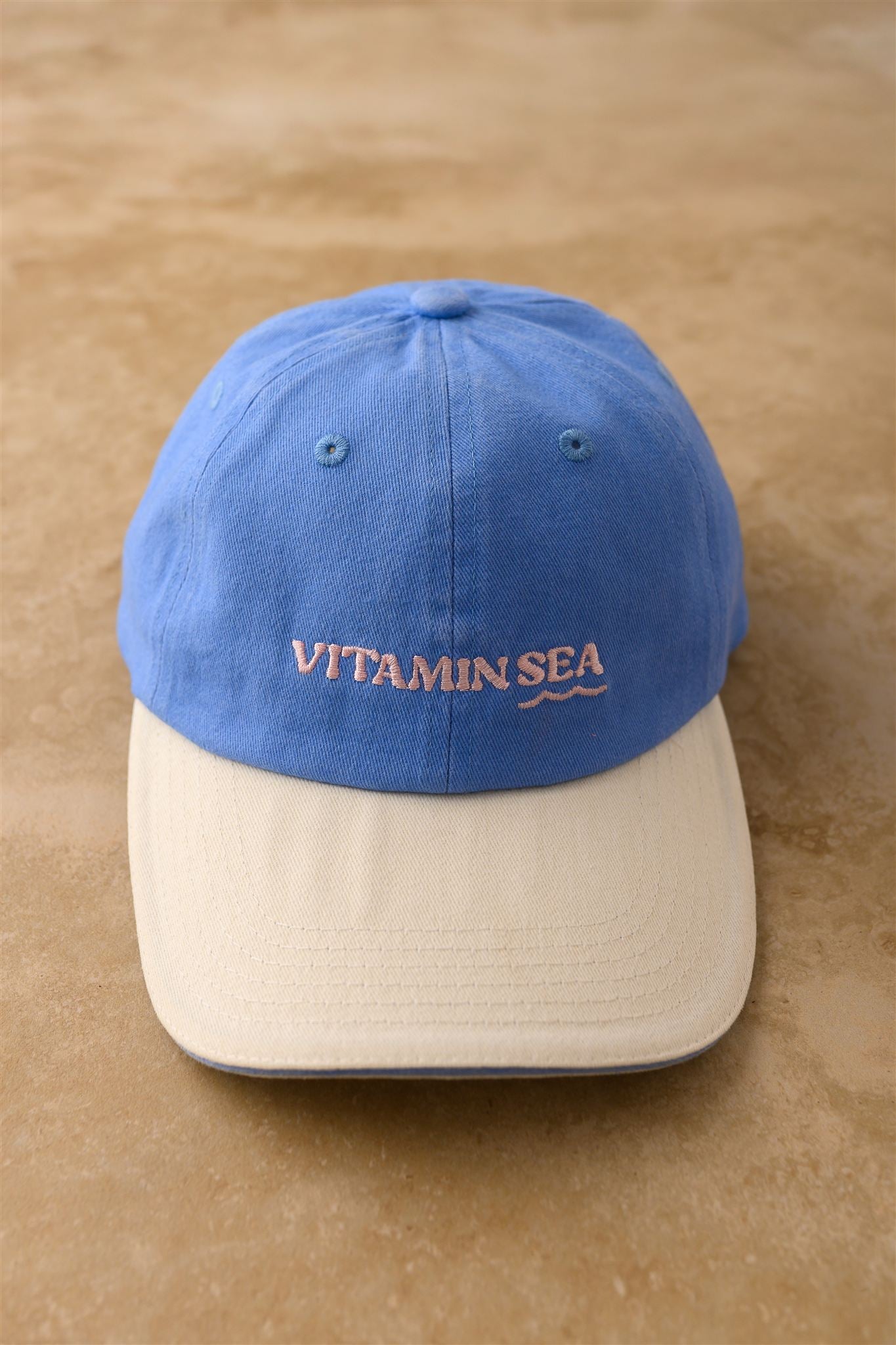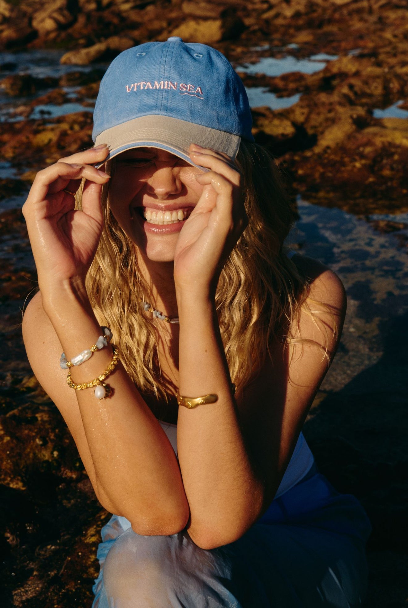 The Vitamin Sea Cap is crafted from premium cotton in a soft aqua blue wash, finished with contrast beige embroidery that nods to sandy coastlines and endless summer days. Lightweight and unstructured, it’s designed for relaxed, everyday wear — the kind of piece that feels like holiday energy, wherever you are.
