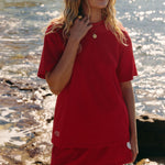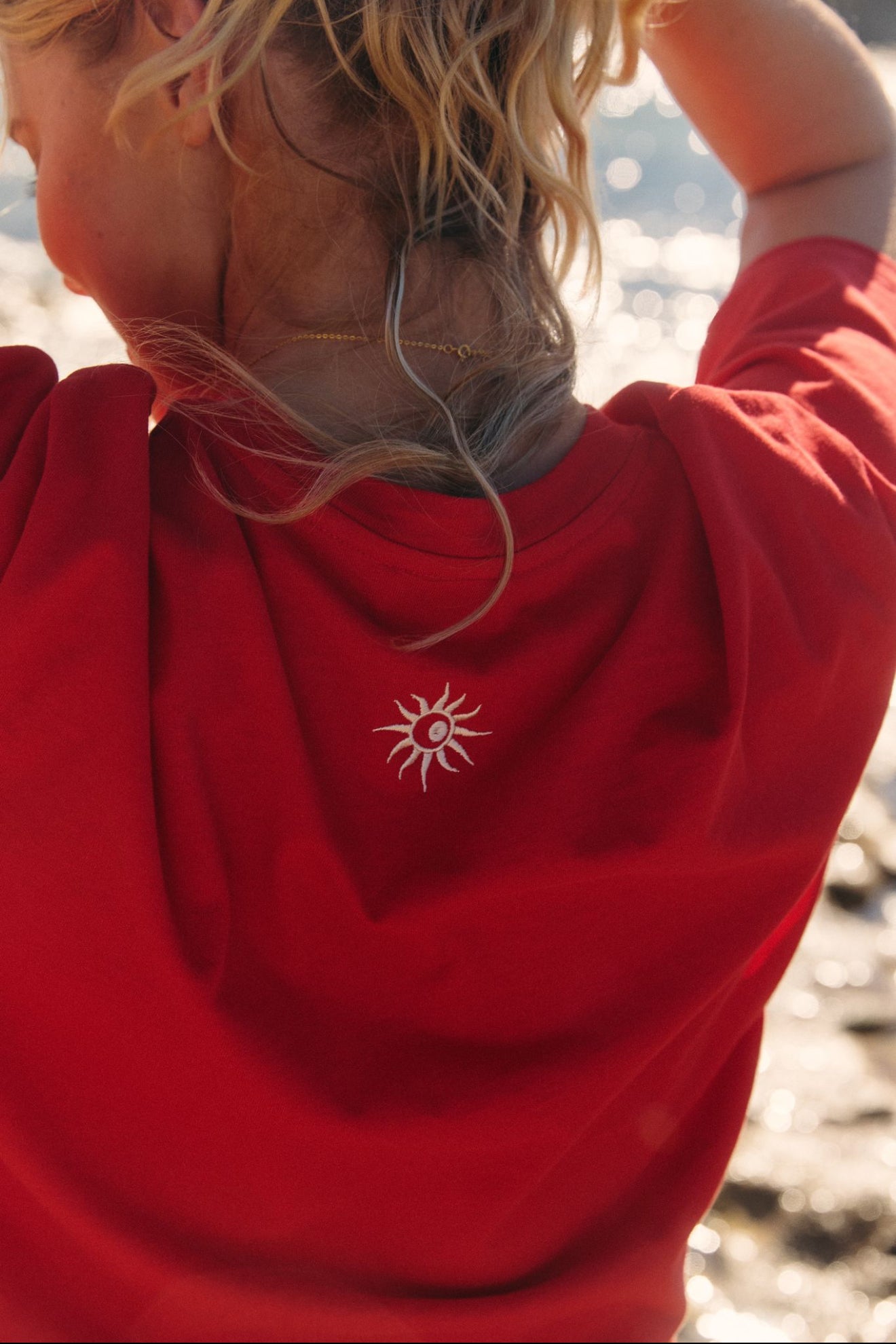 Crafted from premium organic cotton hemp, the Sol Run Tee is soft yet structured, with a slightly oversized cropped fit that drapes effortlessly. Featuring delicate embroidery and a lived-in feel, it’s made for sun-kissed days and easy layering.